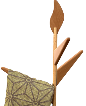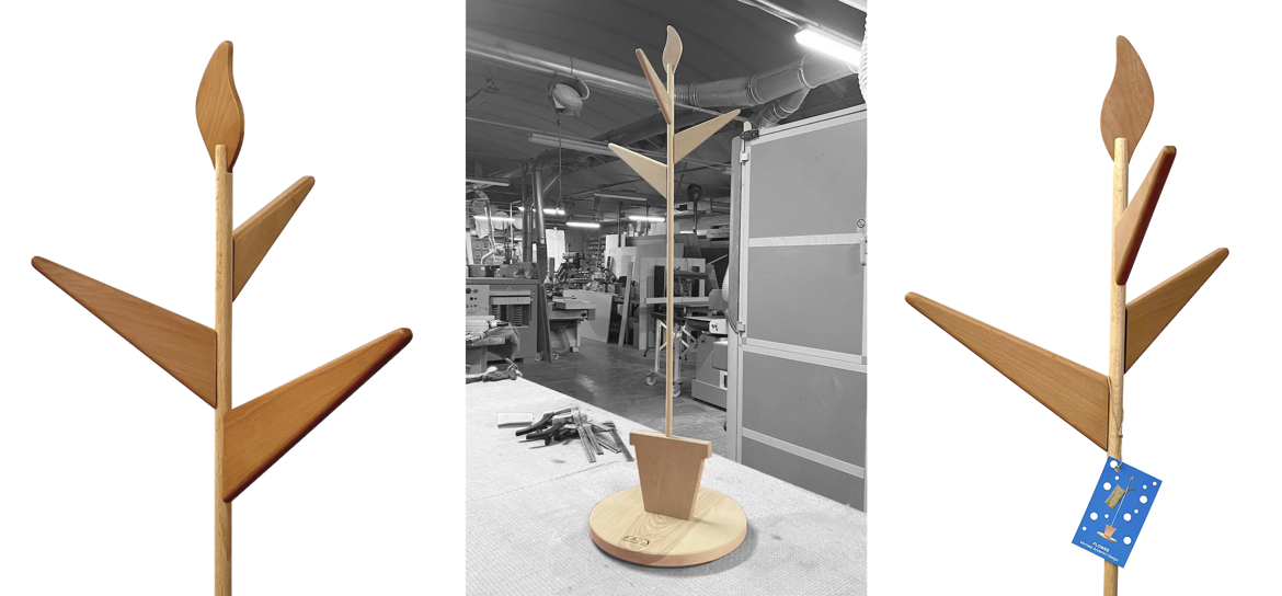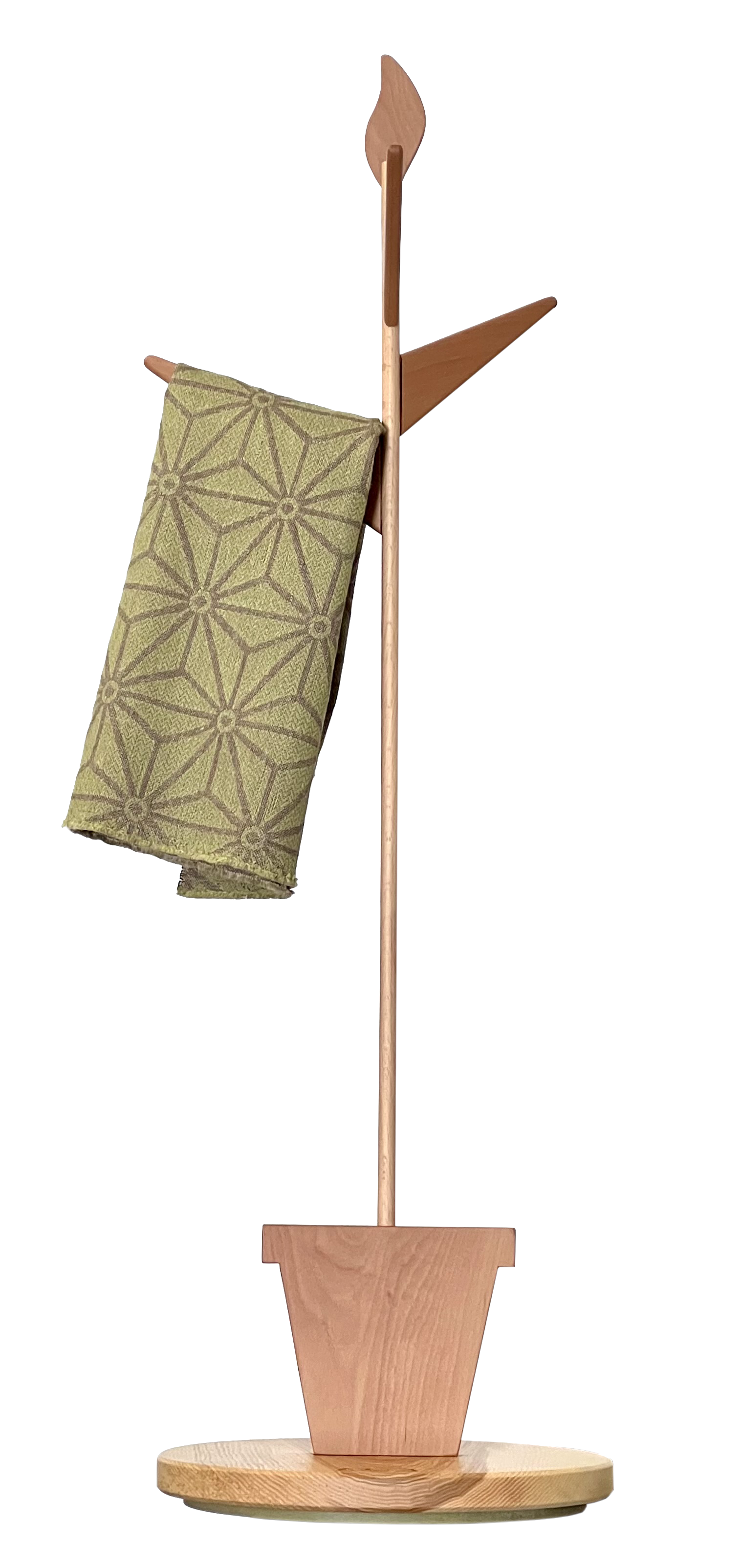 This unique design object is a towel holder shaped like a plant in a flower pot. Made of beech and ash wood, this elegant and functional piece of furniture fits perfectly in any room of the house. Its plant-like shape adds a touch of naturalness to the environment, while the flower pot-shaped base serves as a stabilizing support for the stem. The combination of aesthetics and functionality makes it a perfect addition to any modern bathroom.