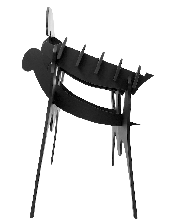 Una delle creature nate dalla mente di Hans Rudolf Giger diventate universalmente note è proprio quel cucciolotto allegro di Xenomorfo, tanto amico di Sigourney Weaver alias tenente Ellen Ripley. Gran parte del lavoro dell'illustre cittadino svizzero ha visto come protagonisti esseri al limite del terrificante, incroci tra uomo e macchina che emergono da scenari cupi in cui il colore dominante è il non-colore per antonomasia:il nero. Tutto questo ho cercato di riassumerlo nel progetto di un leggio dedicato al bellissimo libro della casa editrice Taschen elegantemente rilegato da Mauro Loce. Un libro dalle dimensioni importanti che merita di essere tenuto in bella vista diventando protagonista di un ambiente per molti, ma non per tutti. M A