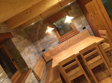 Dopo oltre trecento anni l'uomo ritorna fra le pareti in larice di questo splendido esempio di architettura alpina. Lo fa lasciando praticamente intatto l'esterno ben contestualizzato ma rendendo attuale lo spazio interno. La mia idea? Forme nuove tra i materiali della tradizione.