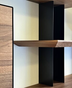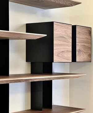 Piani sospesi a far bella mostra di se. Le venature di queso prestigioso e straordinario legno raccontano il tempo delle cose più di mille parole.