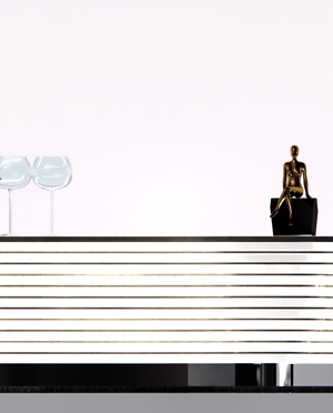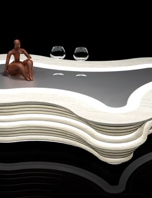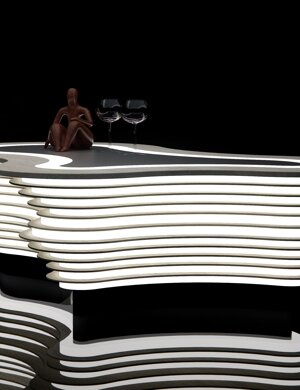 La Pietra Code viene qui interpretata sfruttando le caratteristiche fisiche delle sottili lastre in Dekton® che consentono leggerezza e gentilezza formale. L’idea è quella di creare un complemento funzionale ad alto richiamo visivo per le aree conviviali degli hotel di lusso. L’elemento differenziante sta nell’inserimento di un’illuminazione a LED alimentata