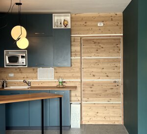 In questo piccolo appartamento all'ultimo piano di una palazzina degli anni '70 dovevamo intervenire con una riqualificazione limitata ad arredi, rivestimenti e complementi. Il risultato è stato un cambiamento che non ha stravolto ma piuttosto armonizzato gli ambienti.
