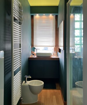 In questa parte della casa siamo intervenuti con piccoli accorgimenti e un solo nuovo arredo sospeso.