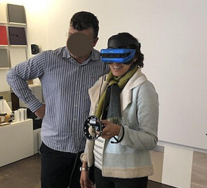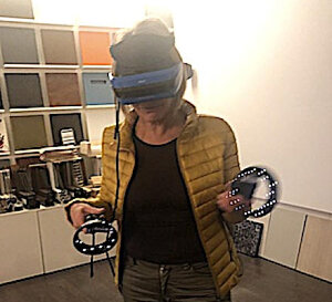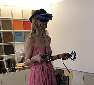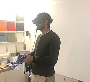 è ora notevolmente semplificata e non comporta alcuna conoscenza delle strumentazioni in dotazione. Basta indossare un visore ed utilizzare 2 comandi senza fili (uno per mano)per muoversi nello spazio virtuale e interagire con gli oggetti presenti nel contesto progettuale. L’utente potrà immergersi completamente nell’ambiente, avere l’impressione di toccare con mano ogni cosa e soprattutto capire concretamente gli spazia disposizione verificando le larghezze tra mobili, pareti e molto altro.